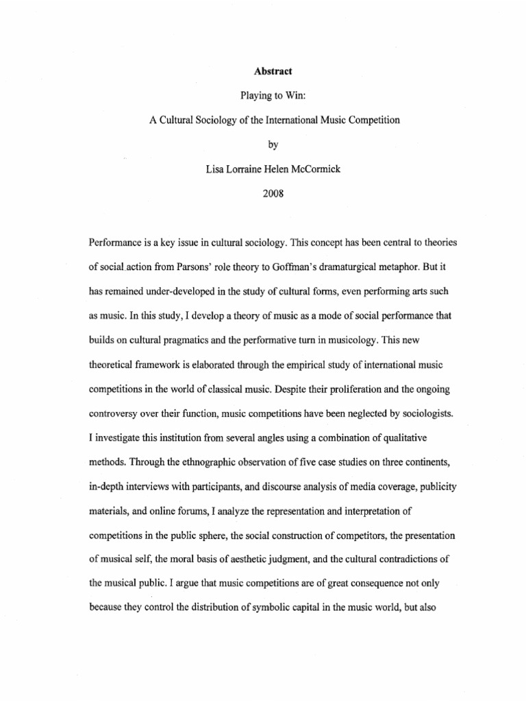 Cultural Sociology Of The International Music Competition