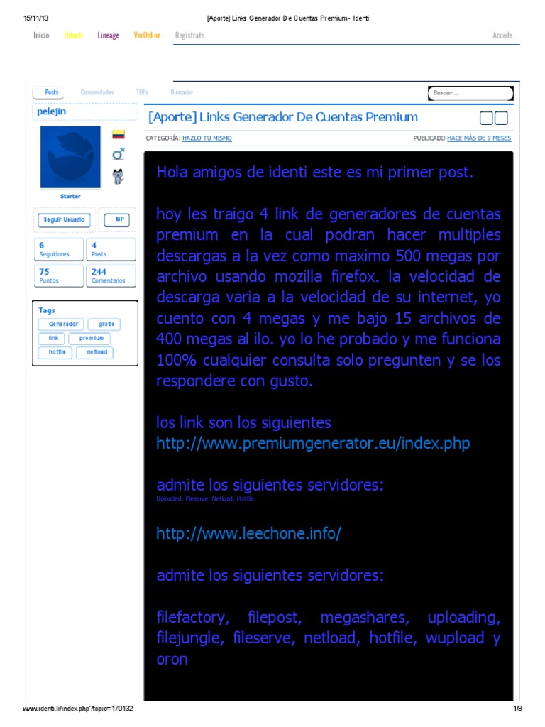 Aporte Links Generador De Cuentas Premium Identi Informatica