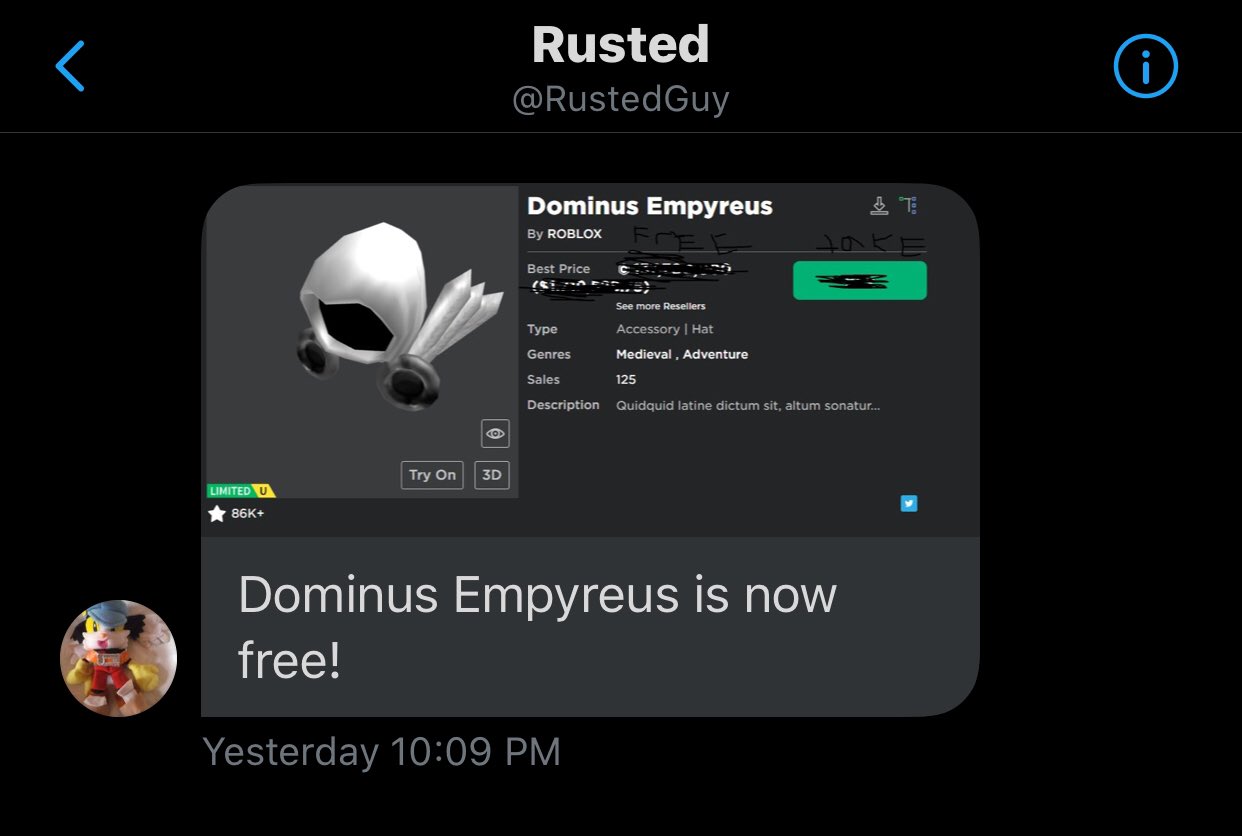 News Roblox On Twitter Roblox Just Made The Dominus Empyeurs