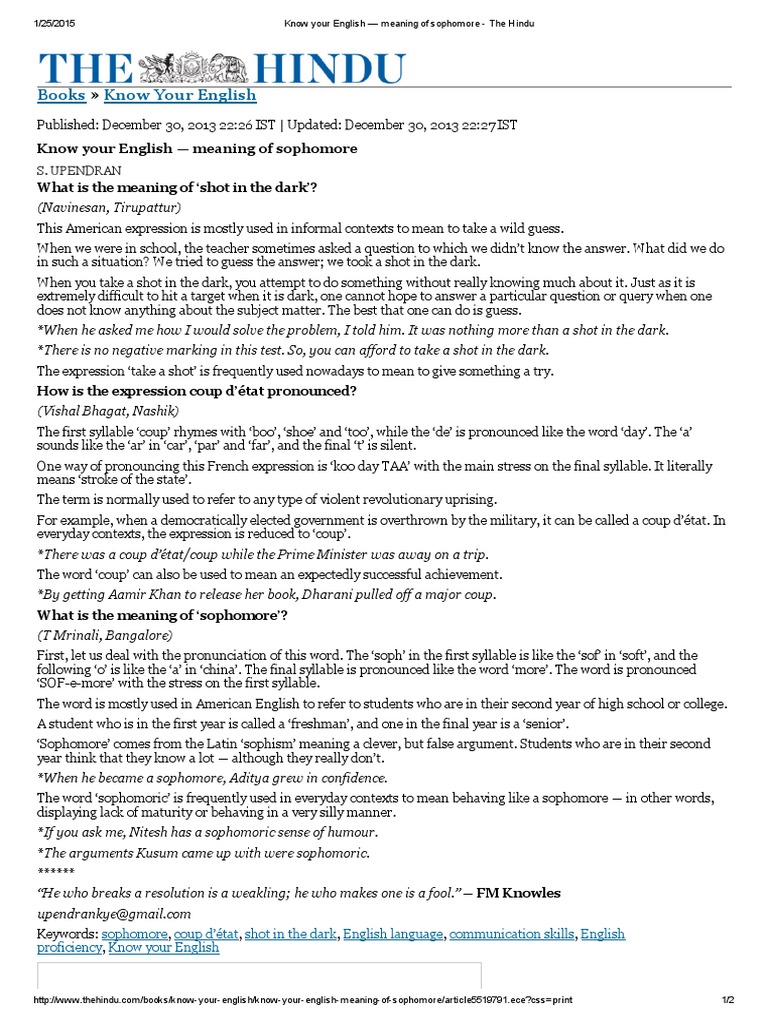 30 Dec 13know Your English Meaning Of Sophomore The Hindu